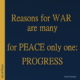 During my neuroscience studies, I found an interesting behavior of our brain. It does not understand negation. When you think every day that you don’t want to die, you risk your life more than in any other circumstance. Wanting peace because you don’t want to die is simply not working. Finding a real reason for peace requires first identifying that reason. That is the underlying material of war as well. Wanting another country is a simple and achievable reason. The beauty is that “Wanting progress for humanity” supersedes any war because you are progressing with the world – not with warheads.