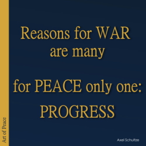 REASON FOR PEACE“Reasons for WAR are many – for PEACE only one: PROGRESS” |